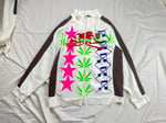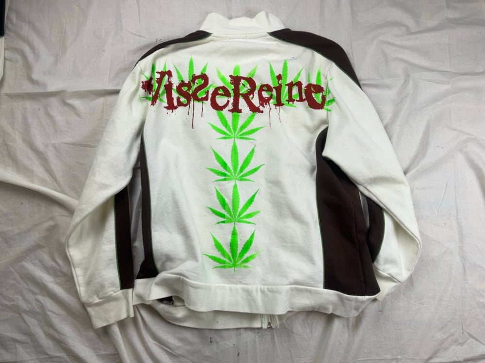 Cotton zip-up, the material is like a hoodie, front+back screenprint.