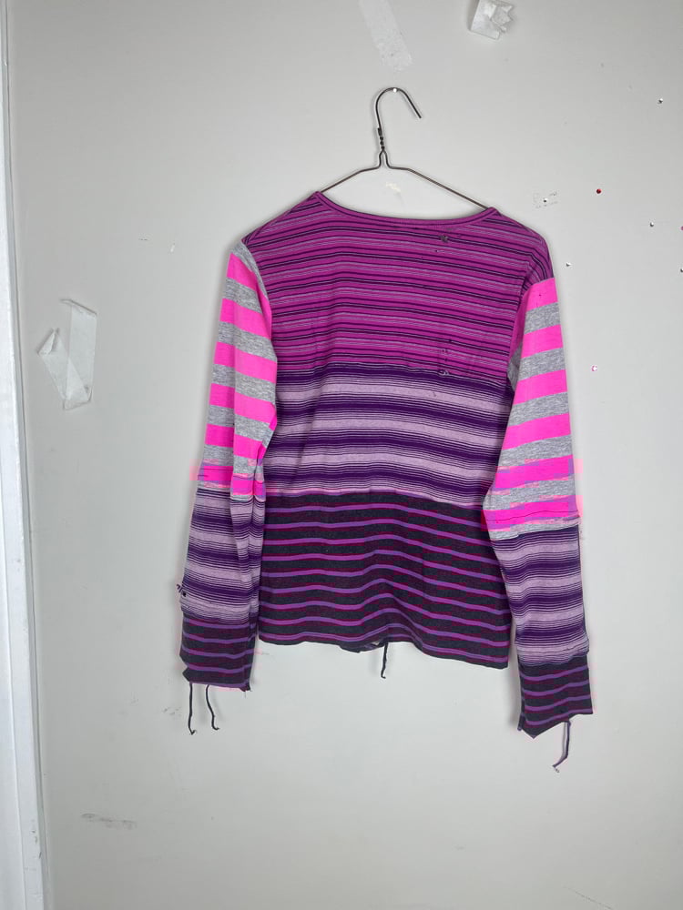 Handmade, screenprinted and hand distressed by me. Made from multiple different type of fabric, all the fabric used is thrifted.