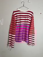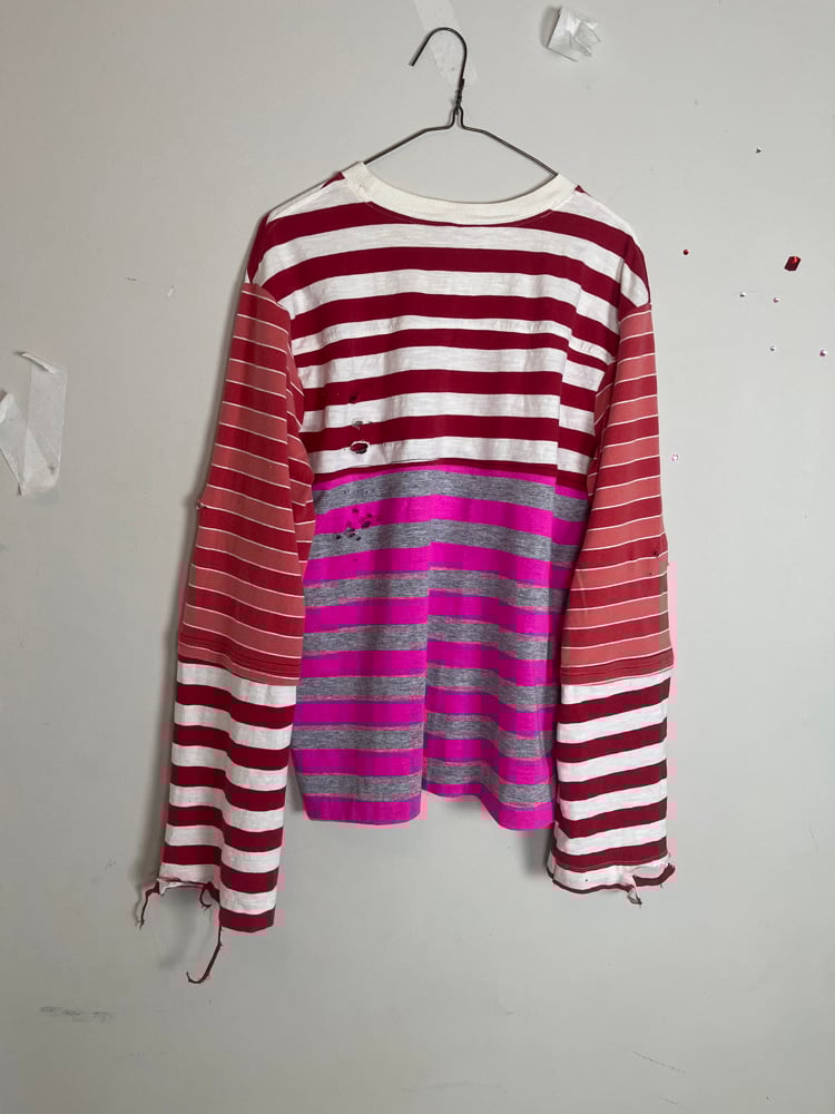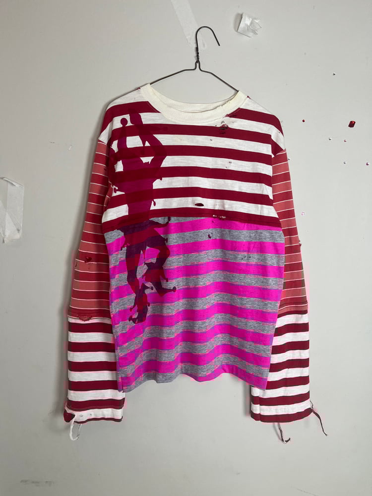Handmade and screenprinted by me. Made from multiple different type of fabric, all the fabric used is thrifted.